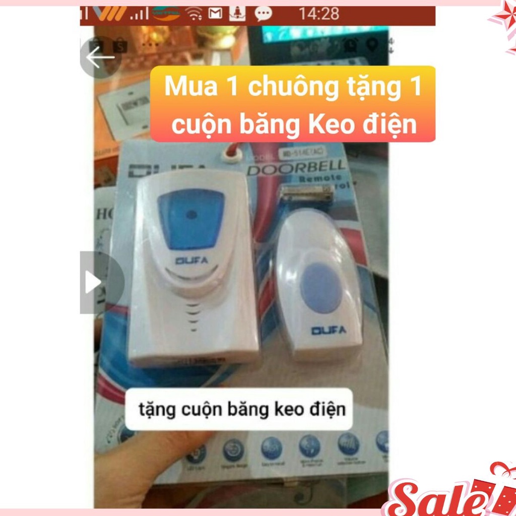 Chuông cửa không dây TẶNG NGAY BĂNG KEO ĐIỆNkhoảng cách phát tín hiệu là 100m ( SHOP KHÁC BÁN LOẠI TÍN HIỆU CHỈ CÓ 20M THÔI KHÁCH NHÉ )