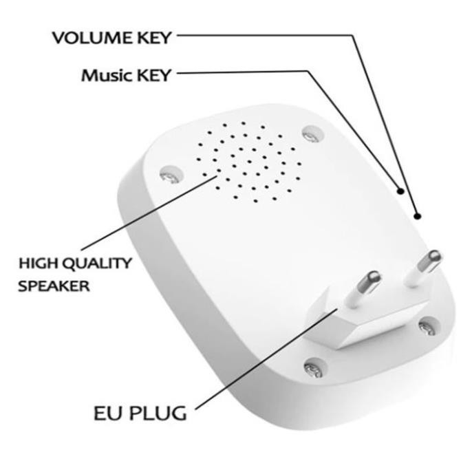 Bộ sản phẩm gồm 1 nút bấm có khả năng chịu nước và 1 chuông có sẵn 36 kiểu nhạc, 3 mức âm lượng: