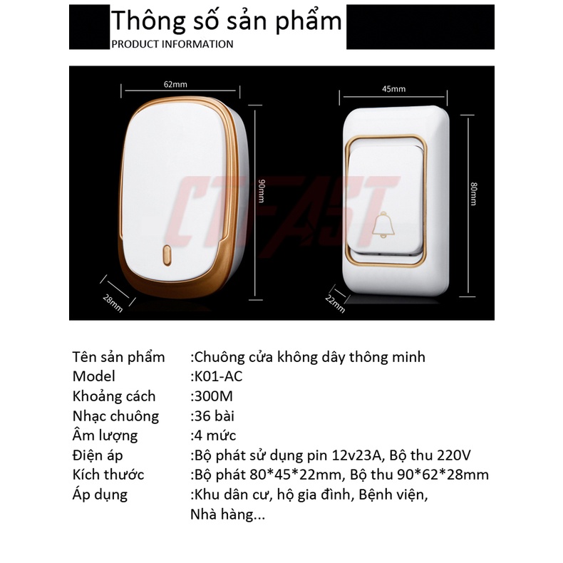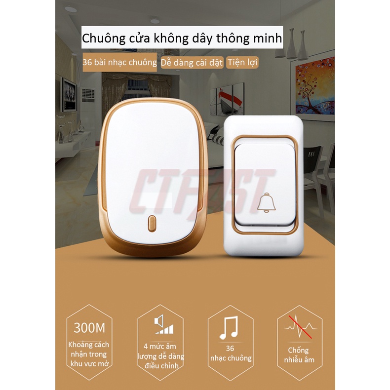 Thiết Bị Điện Gia Dụng > Mạch điện & Phụ tùng > Chuông cửa || Chuông Cửa Không Dây Thông Minh CTFAST CAZI - 01, Màu Sắc Sang Trọng, Chống Nước, Khoảng Cách Sử Dụng Hiệu Quả 300 MétCòn hàng