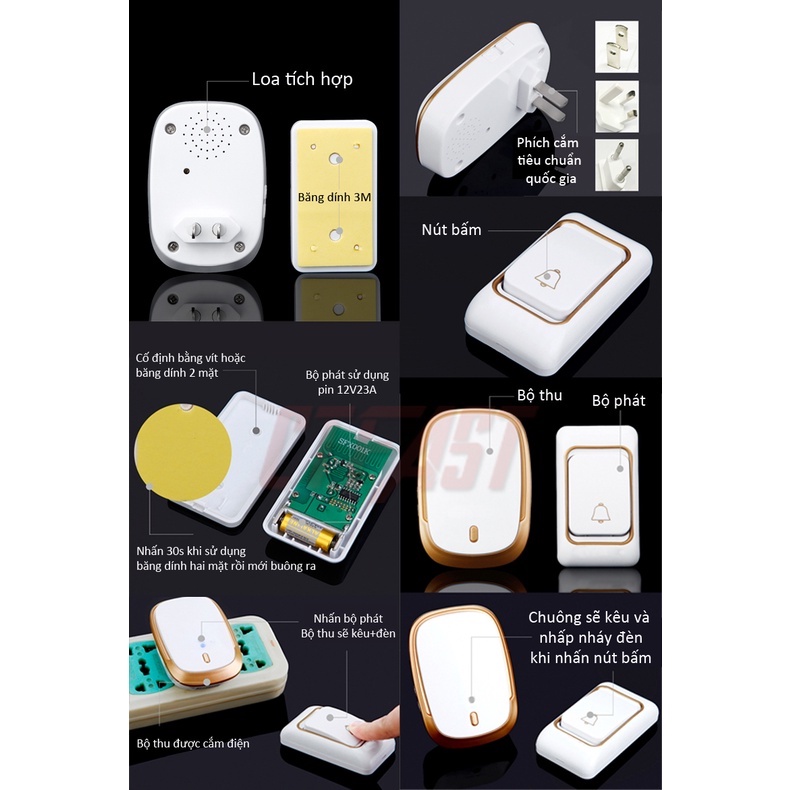 - Sản phẩm gồm 1 nút bấm, 1 chuông giúp bạn dễ dàng bố trí tại các tầng, đảm bảo mức chuông hợp lý không ồn