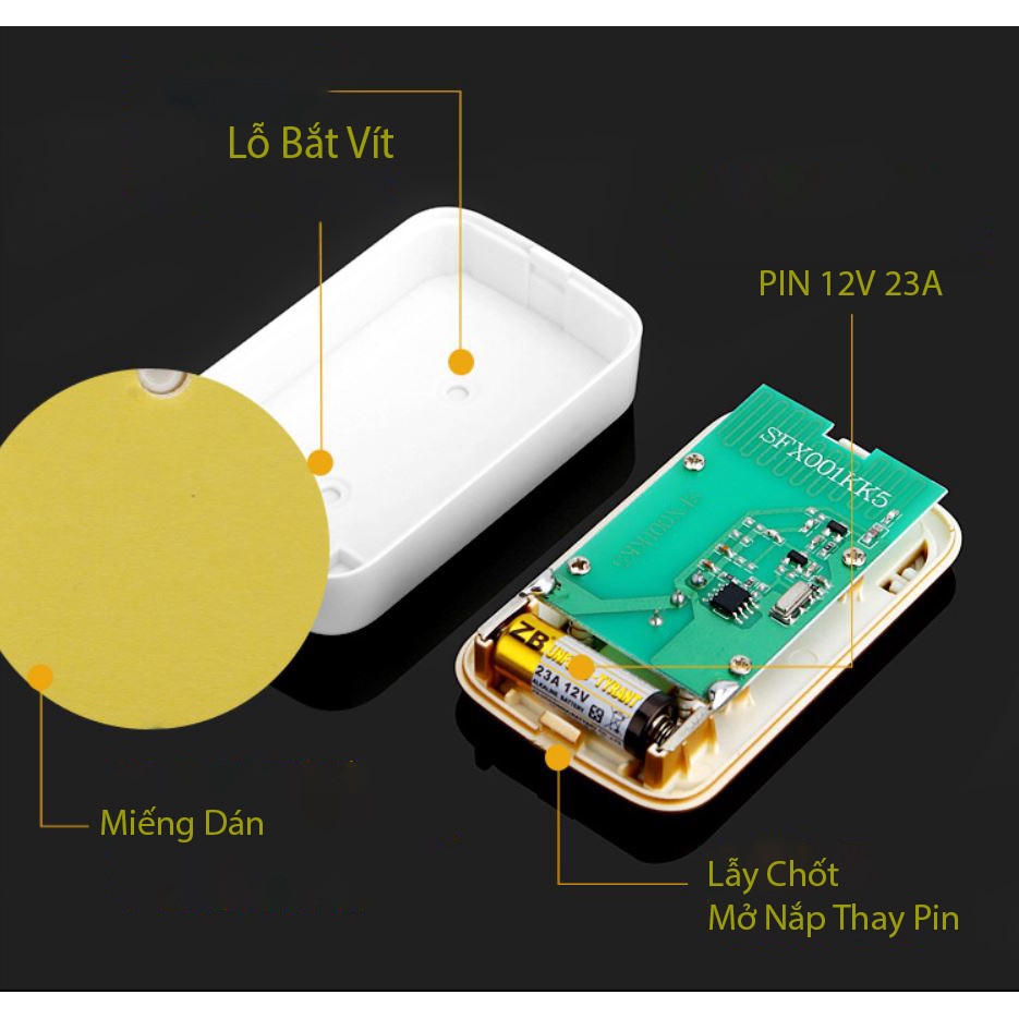 + Chuông Báo: 9 x 5.6 x 2cm.