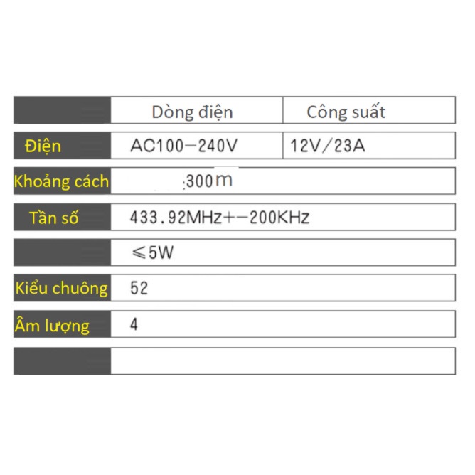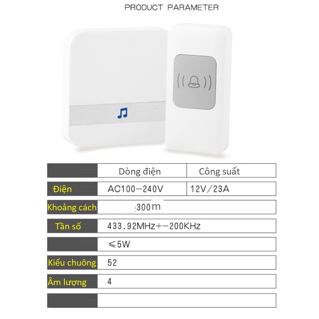 Thiết Bị Điện Gia Dụng > Mạch điện & Phụ tùng > Chuông cửa || CHUÔNG CỬA KHÔNG DÂY TZ801 VỚI 52 KIỂU CHUÔNG VÀ KHOẢNG CÁCH KẾT NỐI 300MCòn hàng