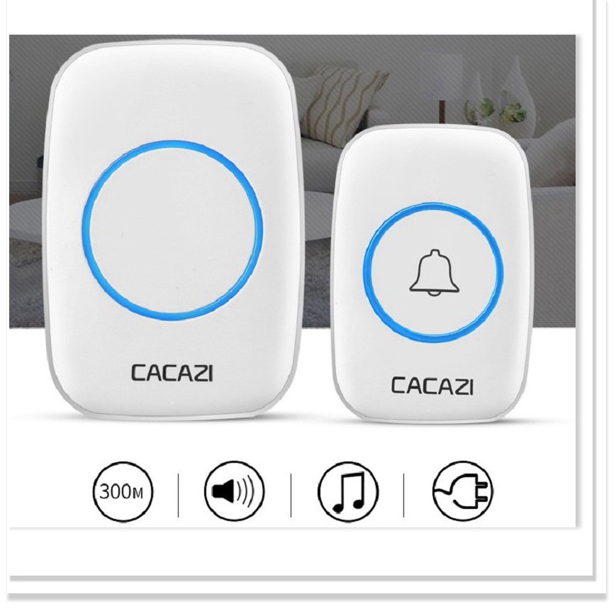 Chuông cửa thông minh không dây Cacazi là phiên bản nâng cấp mới nhất của thương hiệu Cacazi có khoảng cách nhận tín hiệu cực rộng bán kính 300 mét trong điều kiện lý tưởng, có 38 kiểu chuông thay đổi tuỳ ý, 4 mức âm lượng.Nút nhấn chuông Chống nước, có thể lắp đặt ngoài trời.