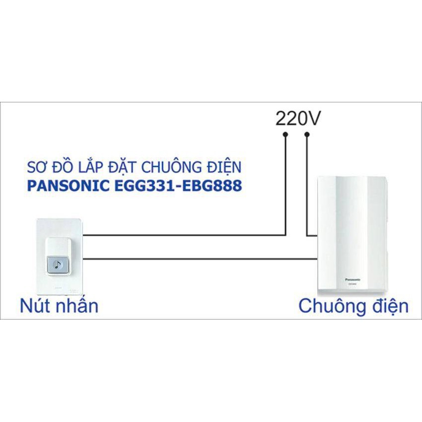 Bộ chuông điện và nút nhấn Panasonic EGG331-EBG888 là sản phẩm chuông điện có dây bán chạy nhất trên thị trường. Thiết bị thích hợp để lắp đặt cho gia đình, văn phòng, cơ quan, nhà máy... để gọi cửa, cổng hoặc thông báo. Sản phẩm thiết kế đẹp, chắc chắn, bền bỉ, giá cả hợp lý nên là lựa chọn hàng đầu của khách hàng khi mua chuông điện.Sản phẩm chính Hãng được sản xuất bởi Panasonic Việt Nam
