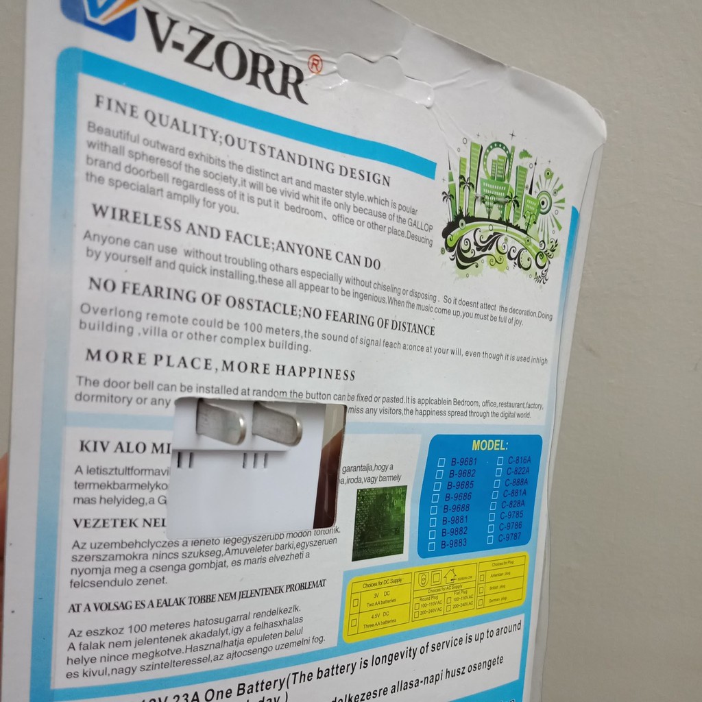 - Chuông cửa có nhiều tiếng chuông vui nhộn. Nhấn vào nút bấm bên cạnh để chọn âm thanh.