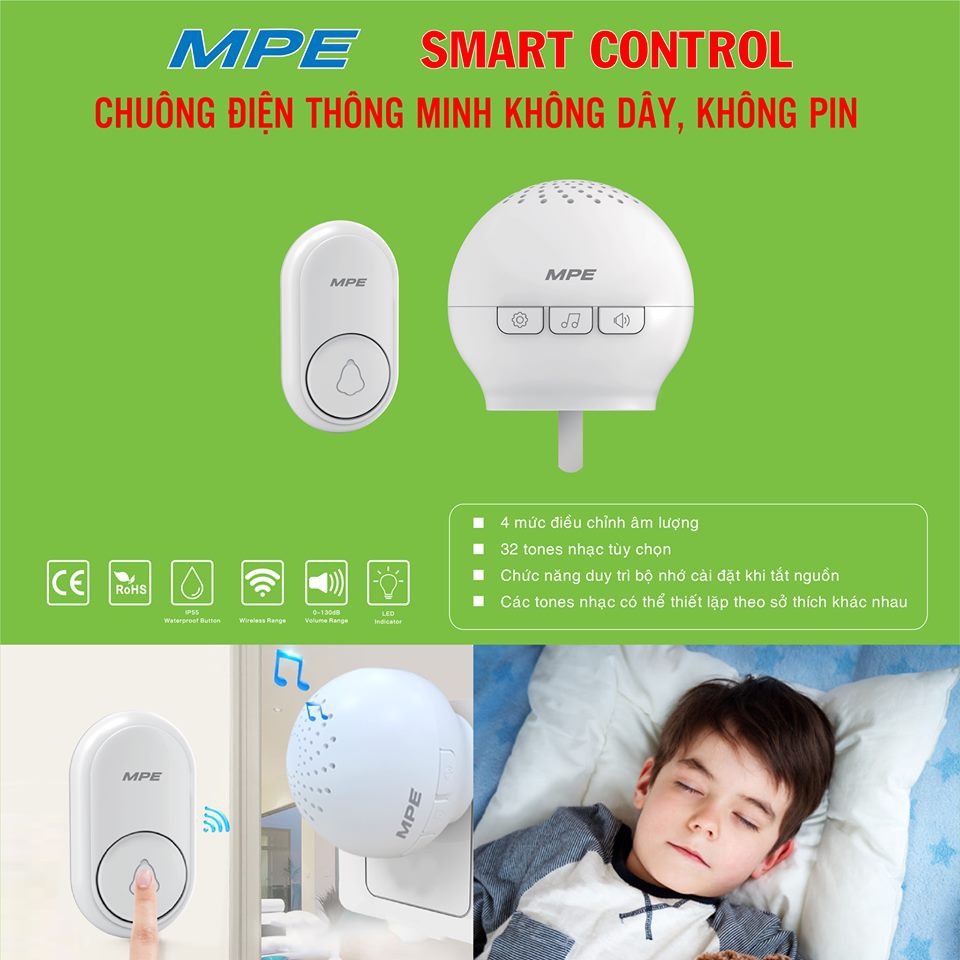 Chuông cửa thông minh không dây không pin MPE DB2 cao cấpChuông cửa thông minh không dây không pin MPE DB2được sử dụng trong nhiều không gian: nhà, chung cư, văn phòng (báo khách đến); Công ty (báo giờ); Nhà hàng, karaoke, bệnh viện (báo hỗ trợ); phòng ngủ (báo thức).