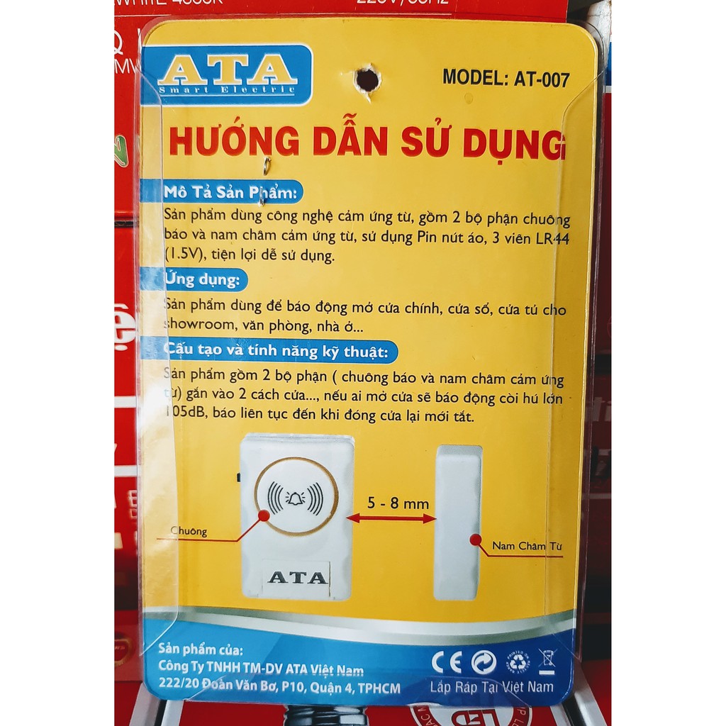 Thiết Bị Điện Gia Dụng > Mạch điện & Phụ tùng > Thiết bị báo động nhà ở || Chuông Cửa Từ Báo Động Cao Cấp ATA AT-007Còn hàng