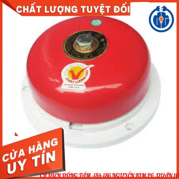Chuông điện 220VAC tiến thành 2 3 4 6 8 10 inch báo giờ, báo cháy được sử dụng khá nhiều. Là loại sản phẩm được sản xuất tại Việt Nam là hàng Việt Nam đạt tiêu chuẩn chất lượng hàng Việt Nam chất lượng cao.Sử dụng nguồn điện cấp để làm quay cuộn điện rung thanh gõ tạo ra âm thanh tiếng reng reng