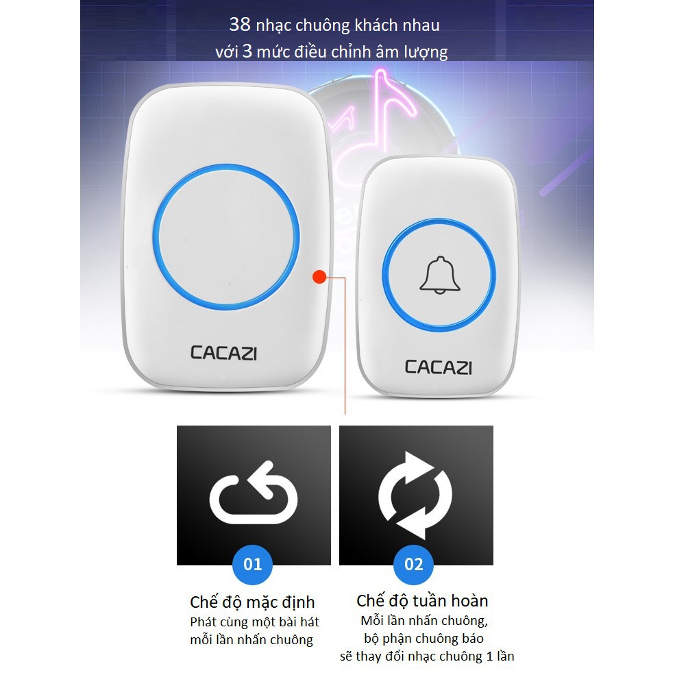 Thiết Bị Điện Gia Dụng > Mạch điện & Phụ tùng > Chuông cửa || Chuông đôi không dây chống nước Cacazi A10 1 chuông và 2 nút bấmCòn hàng