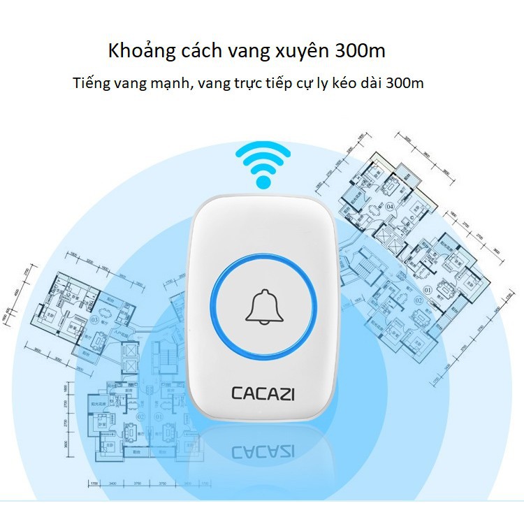 Chuông đôi không dây chống nước Cacazi A10 1 chuông và 2 nút bấm