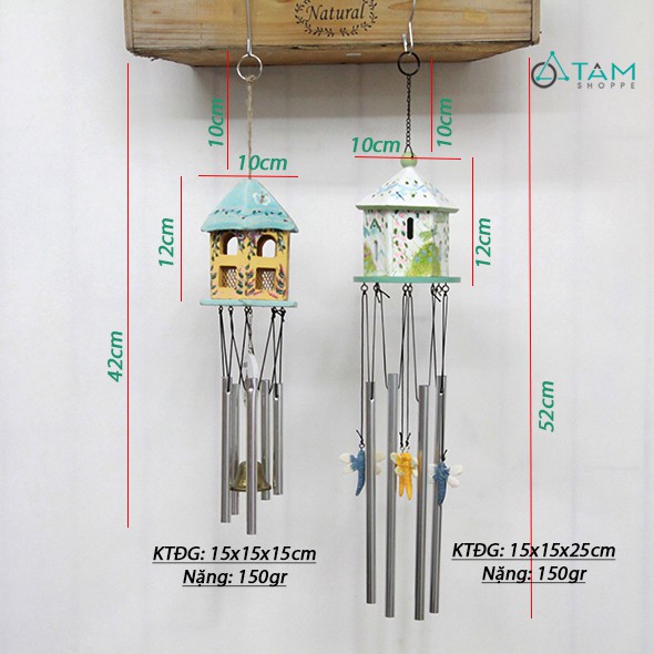 - Chất liệu: Nhà gỗ, chuông nhôm