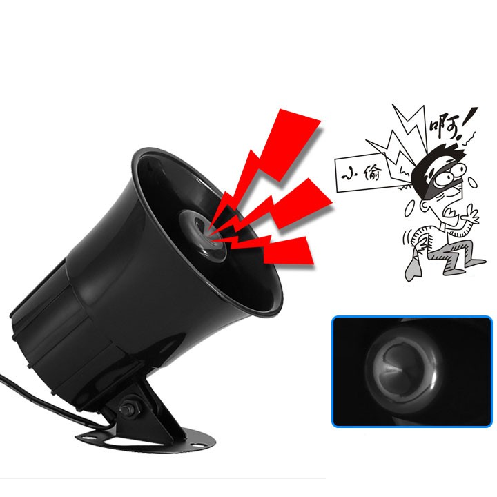 Thiết kế gồm 3 phần chính: 01 còi hú kiểu cảnh sát 12V - 110db, 01 bộ nguồn loa chuyển đổi 100-240V đầu ra 12V-1A, 01 điều khiển từ xa 1 nút bấm giữ khi cần báo động đường chuyền đến 50M.