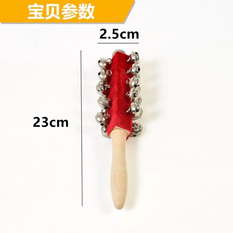 chuông bạc cổ trang chụp ảnh, thân màu đỏ, hàng y như hình, dài 23 cm, rộng 4cm, thân màu gỗ có trang trí nhung đỏ hàng có sẵn