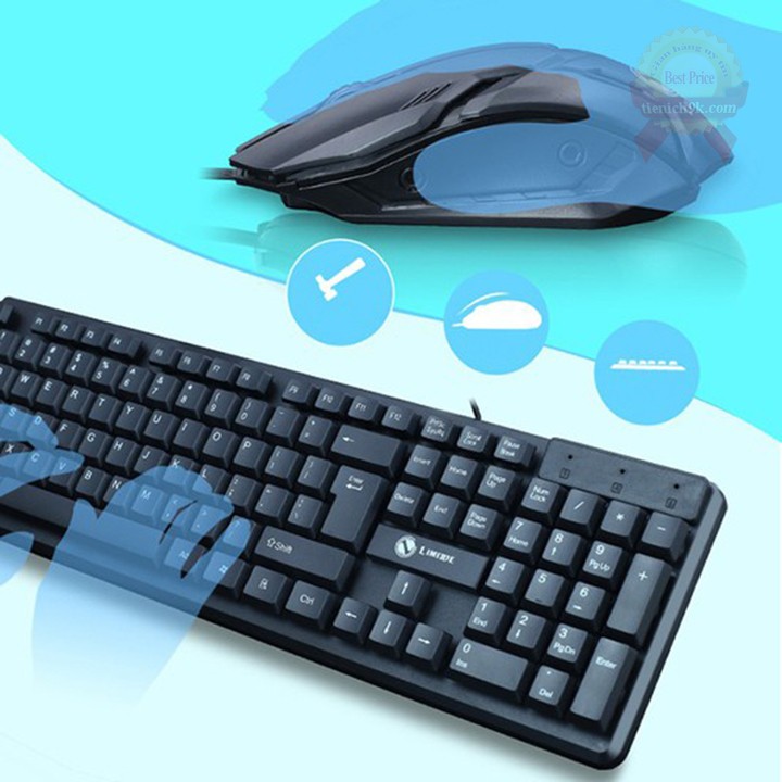Bộ chuột bàn phím văn phòng có dây gõ êm Limeide T13 – BH 12 tháng• Bộ bàn phím chuột không dây chuẩn 2 4GHz Phím chuẩn 104keys tiếng Anh Chữ được khắc Laser không mờ phím theo thời gian