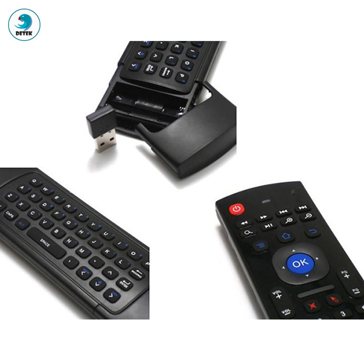 Tất nhiên chuột bay KM900 không thể thiếu tính năng của 1 chiếc remote. Ngoài các phím cơ bản thường thấy trên các loại remote khác, chuột bay KM900 còn có khả năng học lệnh hồng ngoại 44 phím từ điều khiển của các thiết bị khác. Nhờ vậy, khi sử dụng chuột bay KM900, người dùng chỉ cần 1 remote thay vì phải cầm trên tay cả remote tivi.