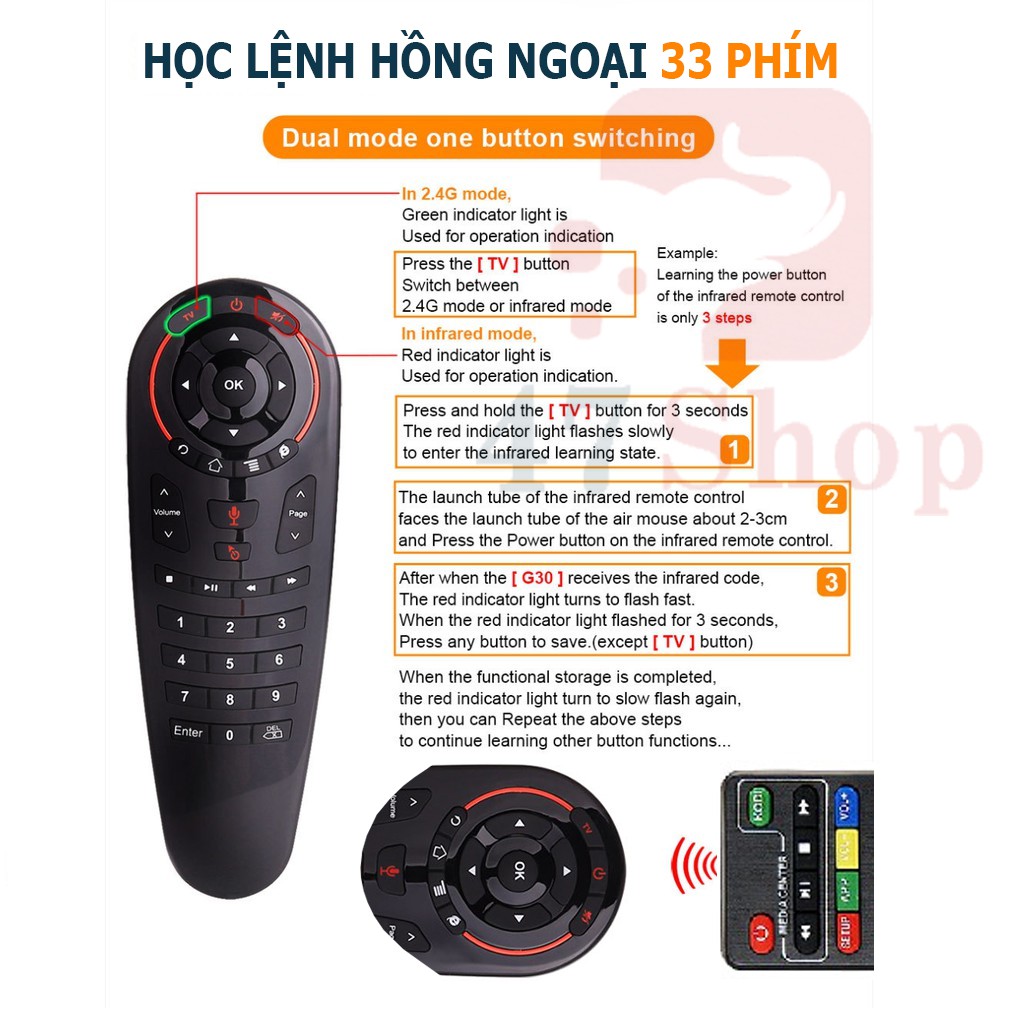 ✔ Chuột bay G30s là chuột bay có hồi chuyển con quay (không phải loại điều khiển chỉ lên xuống) và có chức năng voice search. Tuy nhiên, chức năng voice search này không tương thích với mọi đầu máy và tất cả hệ điều hành. Mong quý khách lưu ý