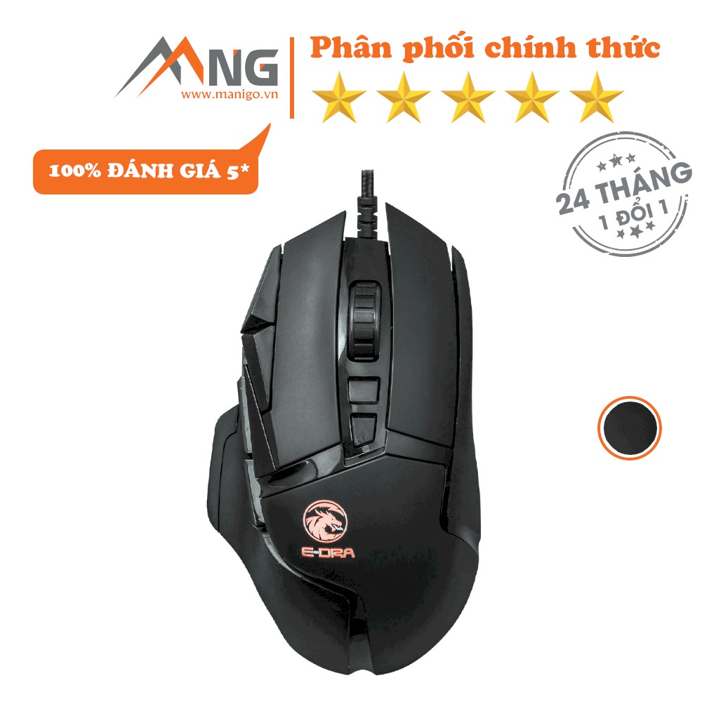Giới thiệu Chuột chơi game có dây EDra EM6502 Pro, cho máy tính, laptop, cảm Biến Quang Học Pixart, có led, chính hãng, có led
