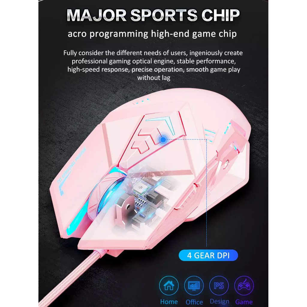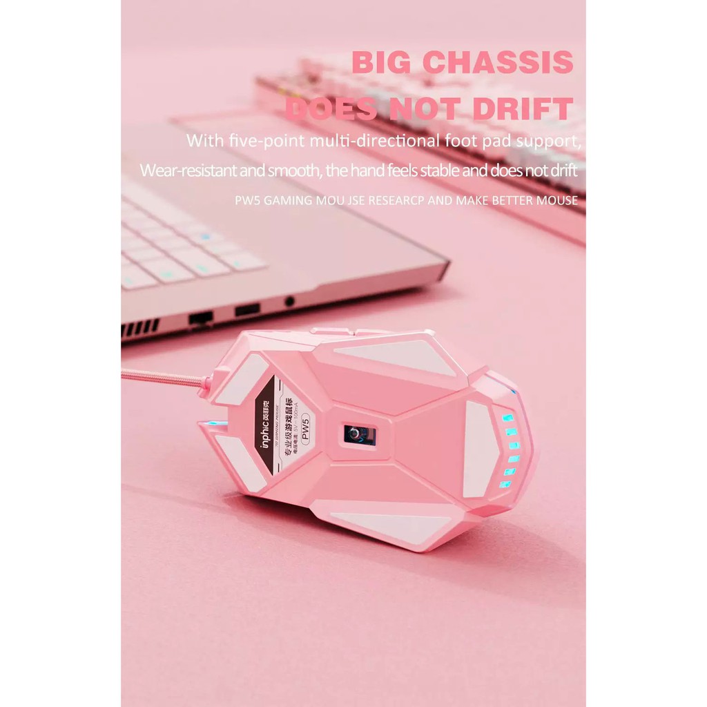 Máy tính & Laptop > Chuột & Bàn Phím > Chuột Máy Tính || Chuột chơi game có dây Inphic PW5 màu hồng cute Hỗ trợ điều chỉnh DPI 4 tốc độ - Chính hãngCòn hàng