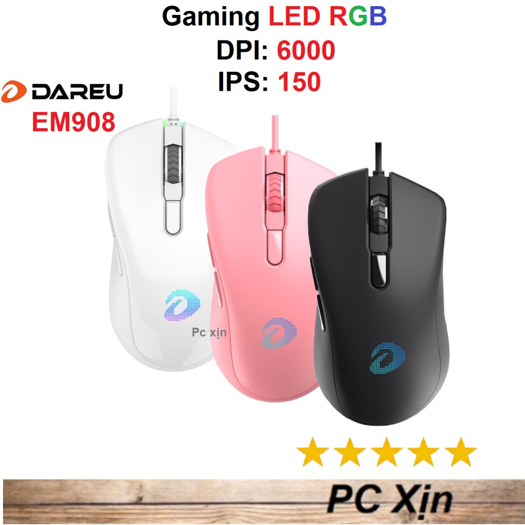 Máy tính & Laptop > Chuột & Bàn Phím > Chuột Máy Tính || Chuột chơi game Dareu EM908 Pink / Black / White Gaming LED RGB, BRAVO sensorCòn hàng