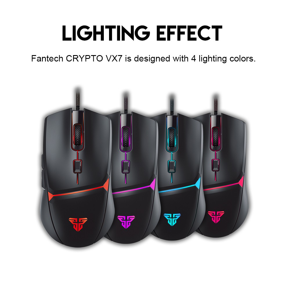 Giới thiệu Chuột Macro Gaming Fantech VX7 Crypto Màu đen trắng 6D RGB. DPI 200 đến 8000 - Hãng phân phối chính thức