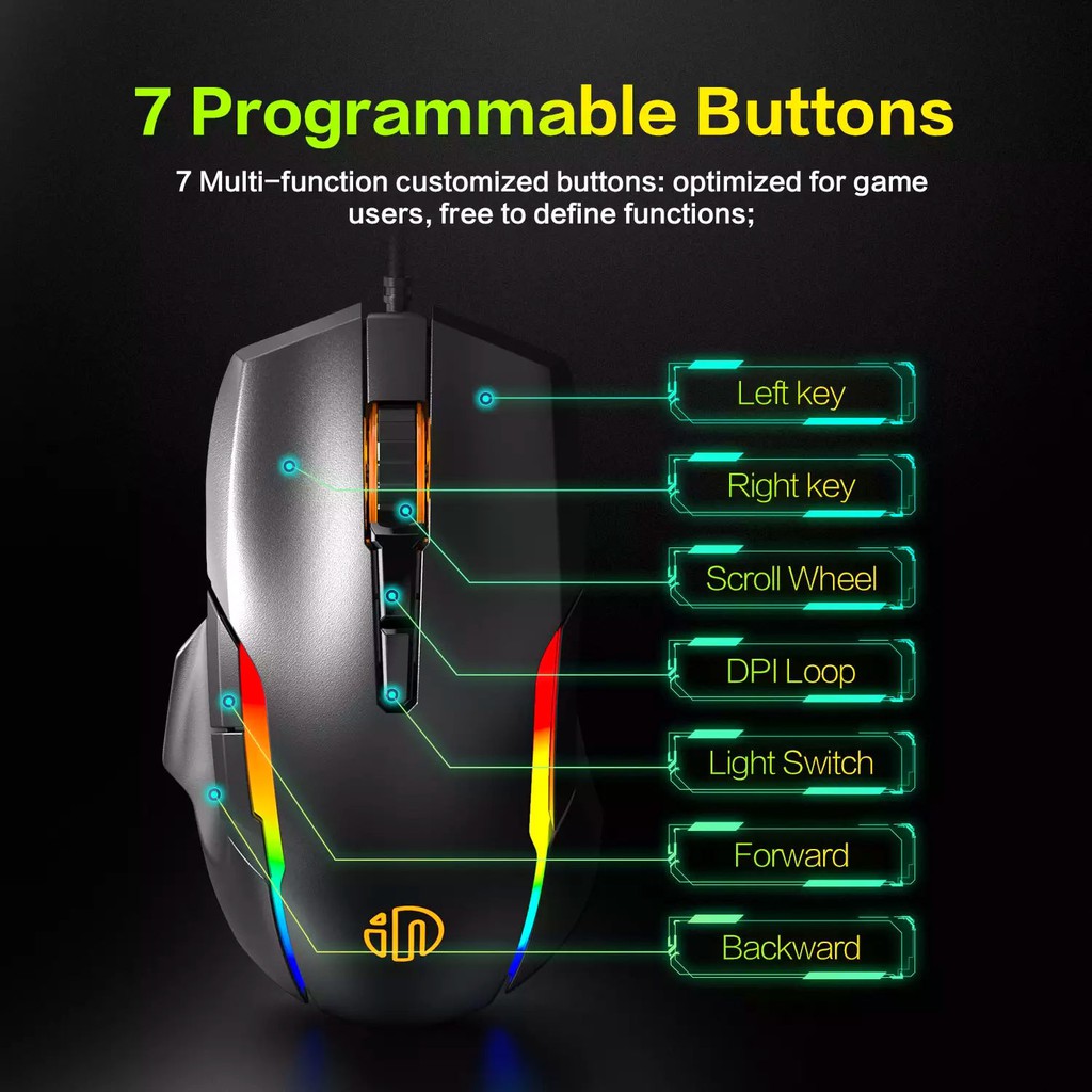 Máy tính & Laptop > Chuột & Bàn Phím > Chuột Máy Tính || Chuột Chơi Game INPHIC PG7 - 7 Nút Điều Chỉnh Tuổi Thọ 10 Triệu Lần Nhấn Tích Hợp LED RGB Siêu Đẹp - Chính HãngCòn hàng