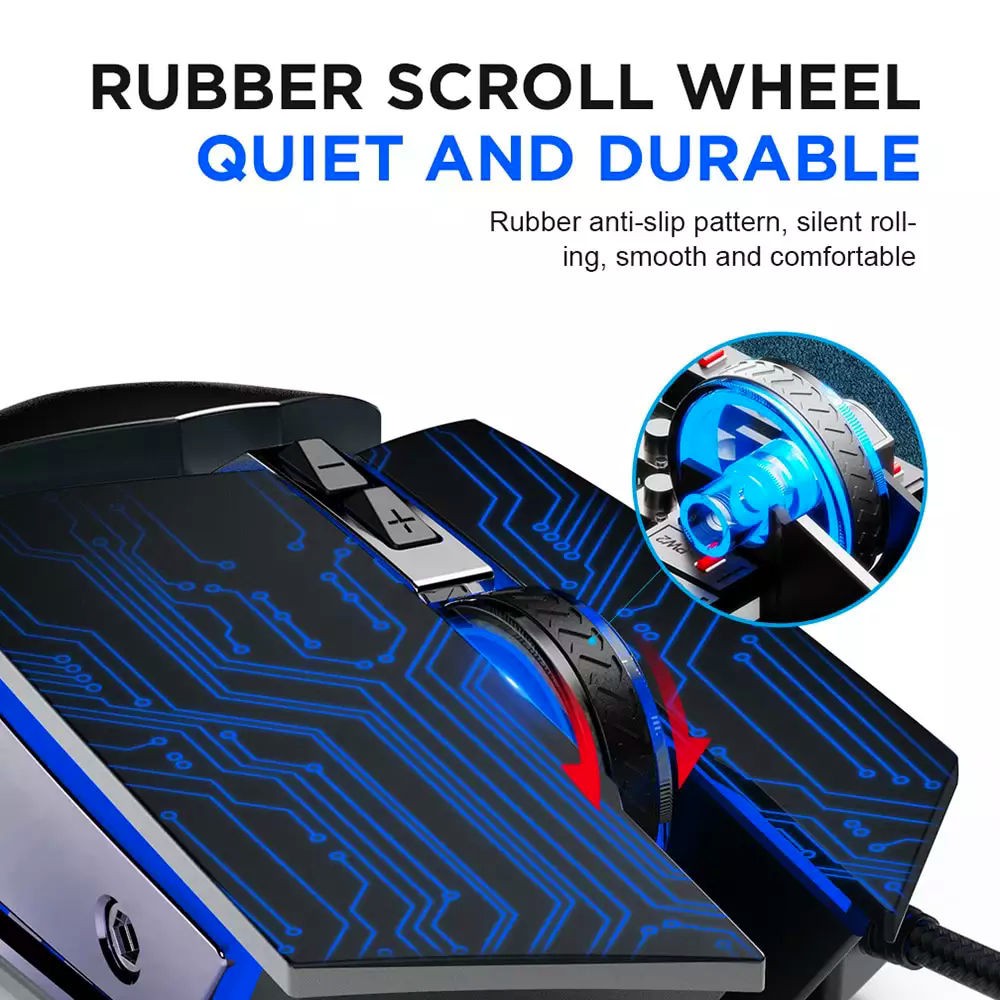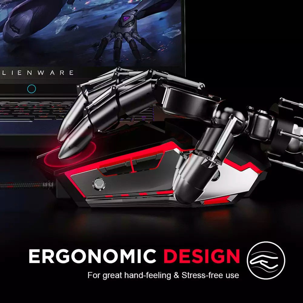 Đèn LED RGB sang trọng và mát mẻ với nhiều thay đổi DPI khác nhau. Điều chỉnh DPI và màu sáng sẽ cho biết thiết kế công thái học giúp di chuyển nhanh bằng tay thoải mái, đặt chuột với 4800 DPI để đạt được lợi thế so với đối thủ của bạn và chỉ huy chính xác tốc độ và độ nhạy. Bạn cũng có thể điều chỉnh DPI bằng nút DPI và màu sáng sẽ cho biết DPI là gì (mặc định): 1200DPI nhấp nháy màu xanh lam, 1600DPI nhấp nháy màu đỏ, 2400DPI nhấp nháy màu hồng, 4800dpi nhấp nháy màu tím.