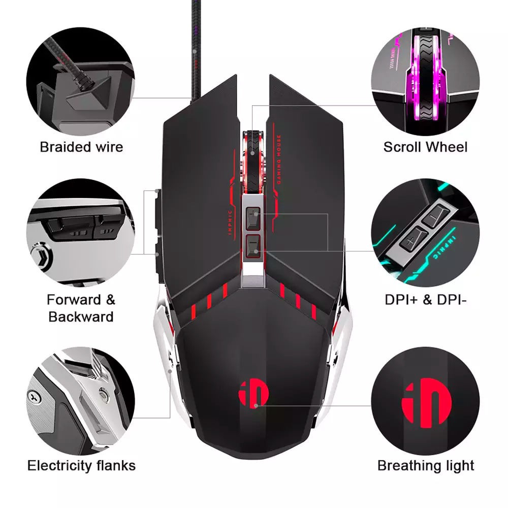 Máy tính & Laptop > Chuột & Bàn Phím > Chuột Máy Tính || Chuột Chơi Game Inphic PW2 dây USB Với Đèn Nền RGB Tiện Dụng Chuột LED 4800 DPI Cho máy tính laptop Chính HãngCòn hàng