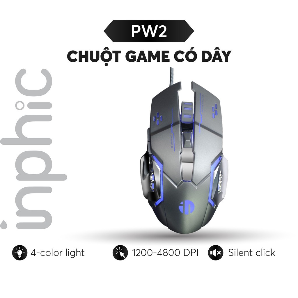 Chuột Chơi Game Inphic PW2 dây USB Với Đèn Nền RGB Tiện Dụng Chuột LED 4800 DPI Cho máy tính laptop Chính Hãng