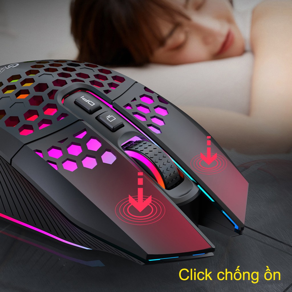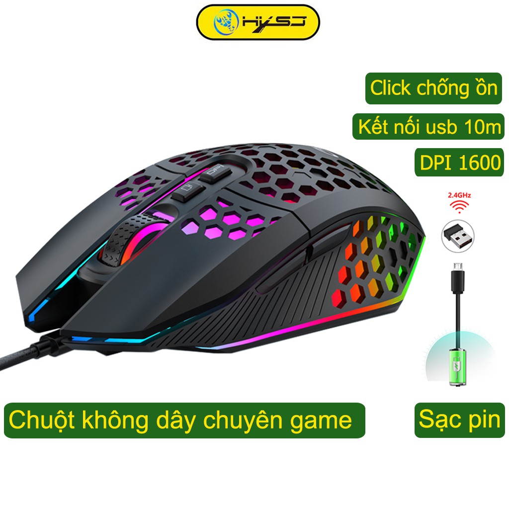 Máy tính & Laptop > Chuột & Bàn Phím > Chuột Máy Tính || Chuột chơi game không dây HXSJ X801 thiết kế độc lạ Led RGB đổi màu click chống ồn DPI 1600 - Hàng chính hãngCòn hàng
