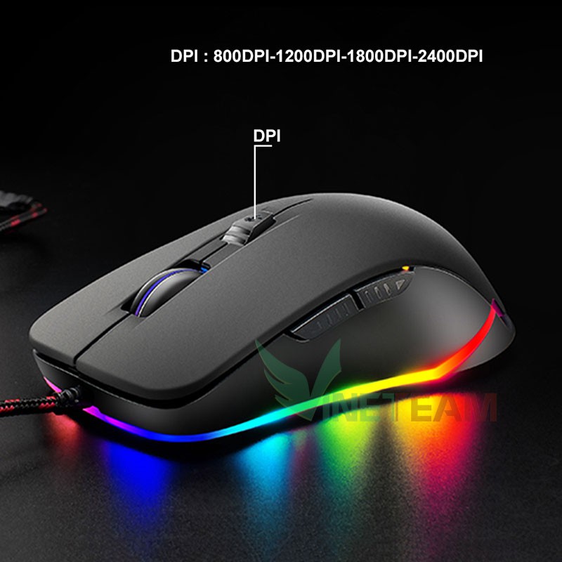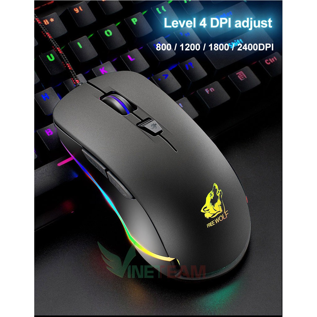 CHUỘT CHƠI GAME LED RGB FREE WOLF V6 -V1(Đen) bảo hành 3 tháng