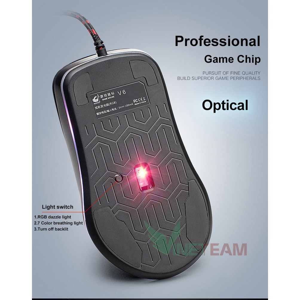 💥 Tên sản phẩm: CHUỘT CHƠI GAME LED RGB FREE WOLF V6 -V1(Đen) bảo hành 3 tháng