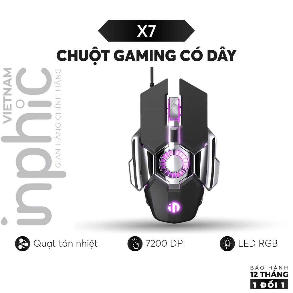 Chuột Chơi Game Quang Học Quạt Tản Nhiệt Có Dây INPHIC X7 Lập Trình 7200DPI 6 Nút Đèn Nền RGB Công Thái Học