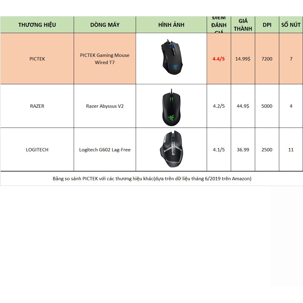 Chuột Gaming PICTEK được xem là thương hiệu khá mới mẻ và xa lạ với thị trường Việt Nam. Tuy nhiên, vươn lên trên hàng ngàn đối thủ khác - kể cả Logitech hay Razer, Genius, PICTEK vẫn duy trì danh hiệu Best Seller qua nhiều năm tháng. Tính tới thời điểm hiện tại, PICTEK đã nhận được hàng ngàn lượt bình chọn và xếp hạng ngất ngưỡng 4.3/5 sao trên sàn thương mại điện tử Amazon, website bán lẻ hàng đầu thế giới.