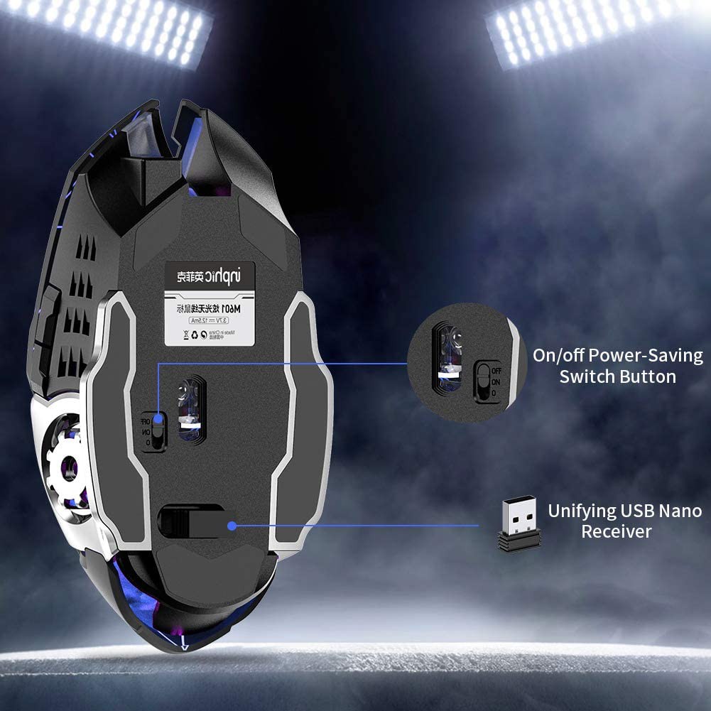 Chuột Chơi Game Wifi Có LED Sao Trời Xanh INPHIC M601 USB 2.4G 1600DPI Đèn Nền LED Nhiều Màu 6 Nút Pin Sạc