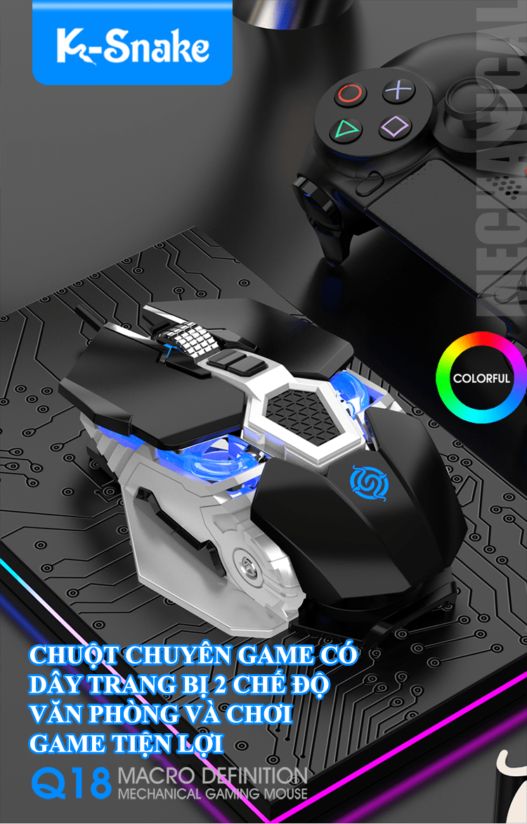 Giới thiệu Chuột chuyên game có dây K-Snake Q18 có 2 chế độ chơi game ghìm tâm và làm việc văn phòng với tốc độ chuột 6400DPI kèm theo đèn led cực đẹp - JL- HÀNG CHÍNH HÃNG
