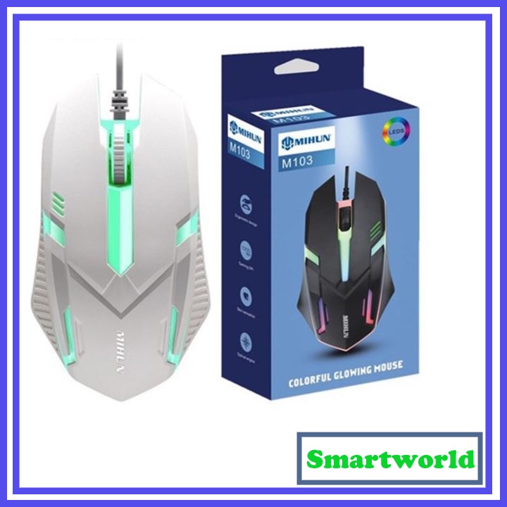 Máy tính & Laptop > Chuột & Bàn Phím > Chuột Máy Tính || Chuột có dây chơi game M103 màu trắng có đèn Led chuyển động siêu đẹpCòn hàng