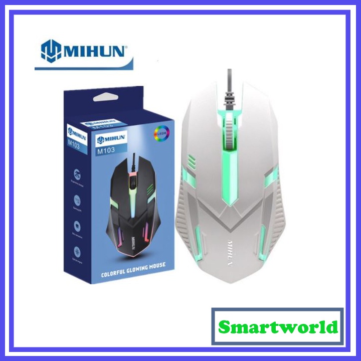 Chuột có dây chơi game M103 màu trắng có đèn Led chuyển động siêu đẹp