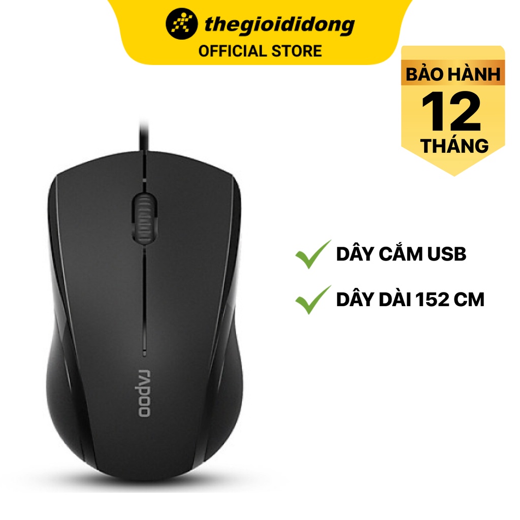 Máy tính & Laptop > Chuột & Bàn Phím > Chuột Máy Tính || Chuột Có Dây Silent Rapoo N1200 Đen 1000 DPI - Hàng chính hãng - BH 24 thángCòn hàng