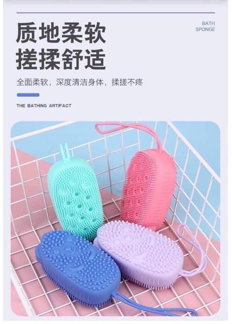 CỌ LƯNG CHUỘT SILICON TẠO BỌTBông tắm silicon 2 mặt, 1 mặt tẩy da chết Massage body, 1 mặt tạo bọt.
