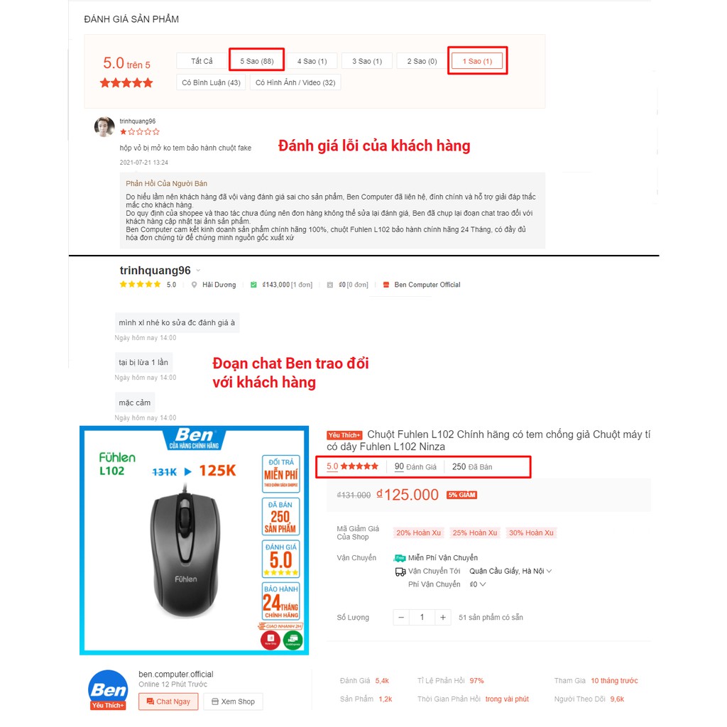 Giới thiệu Chuột Fuhlen L102 Chính hãng có tem chống giả Chuột máy tính có dây Fuhlen L102 Ninza