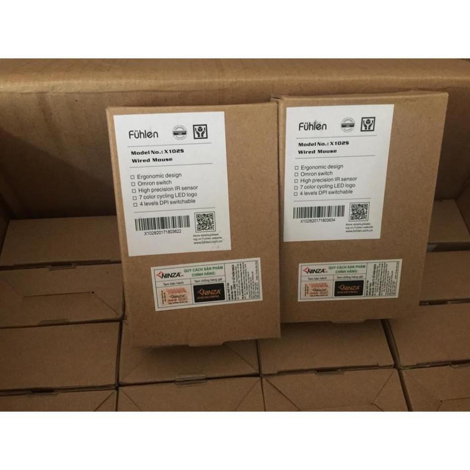 Chuột Fuhlen X102s chính hãng BH 2 năm, phân phối tại Việt Nam bởi công ty Ninza. Hàng chuẩn phải có tem chống giả do Bộ Công An cấp dán bên dưới thân chuột. Ngoài ra còn có tem bóng mờ của Ninza, các bạn xem ảnh mô tả sản phẩm ở trên nhé.