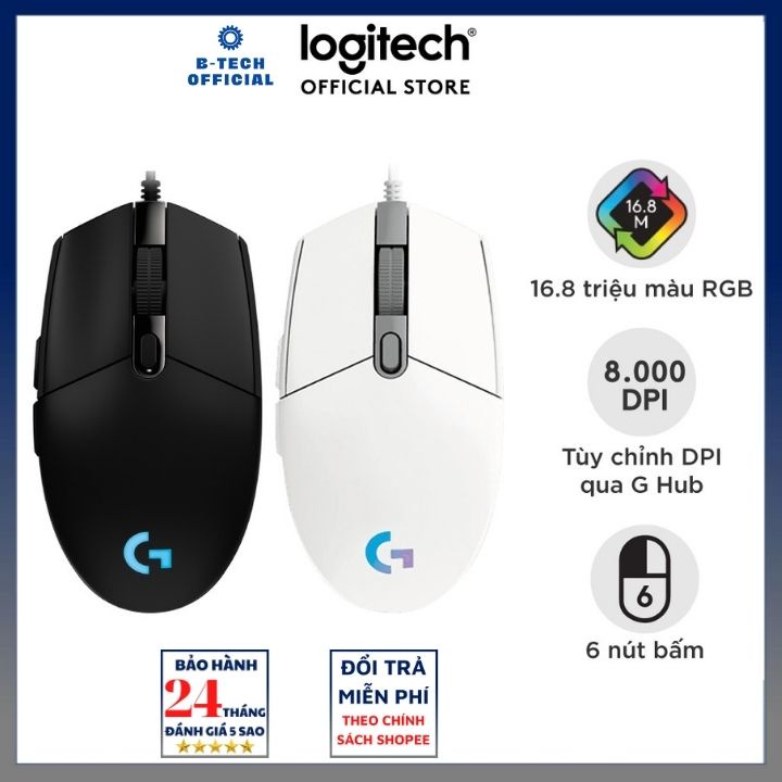 Giới thiệu Chuột game có dây Logitech G102 Lightsync ( Black ) - Tùy chỉnh RGB, 6 nút lập trình - Bảo Hành Chính Hãng 24 Tháng