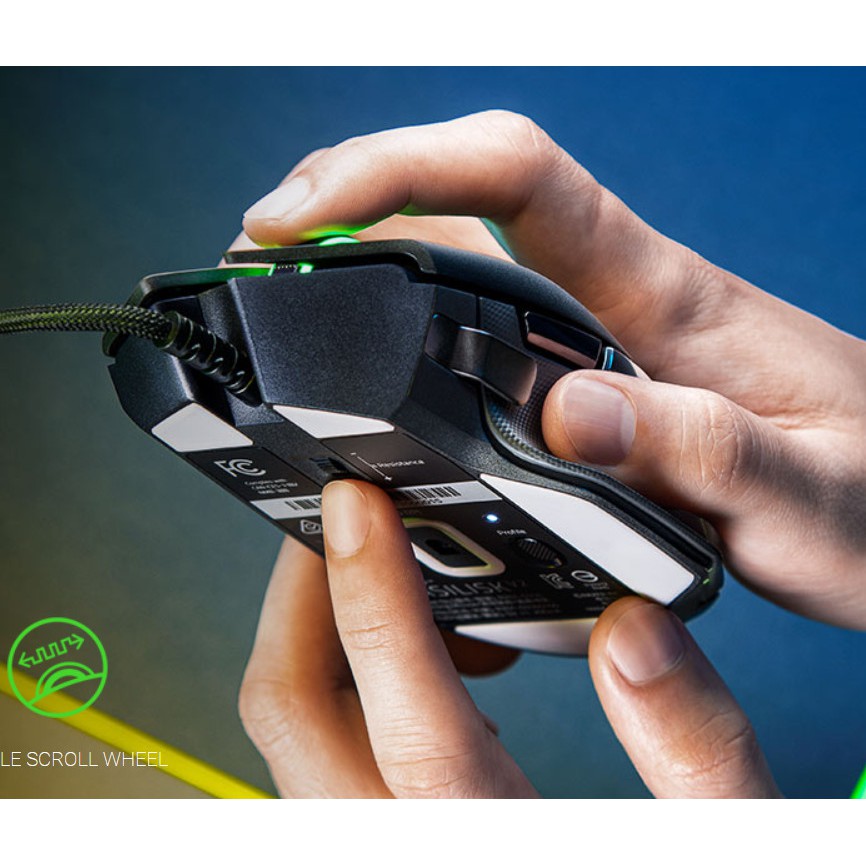 Razer Basilisk V2 có khả năng điều chỉnh độ trơn hay cản lực lăn của nút cuộn. Với 1 nút bấm nhỏ dạng bánh xe ở dưới đáy chuột, bạn có thể khiến nút cuộn lăn trơn tuột tốc độ hoặc lăn theo dạng khấc cản rõ ràng. Với tính năng này, việc di chuyển hoặc thao tác với các món đồ trong game sẽ dễ dàng và chính xác hơn rất nhiều, với chỉ 1 nút bấm.