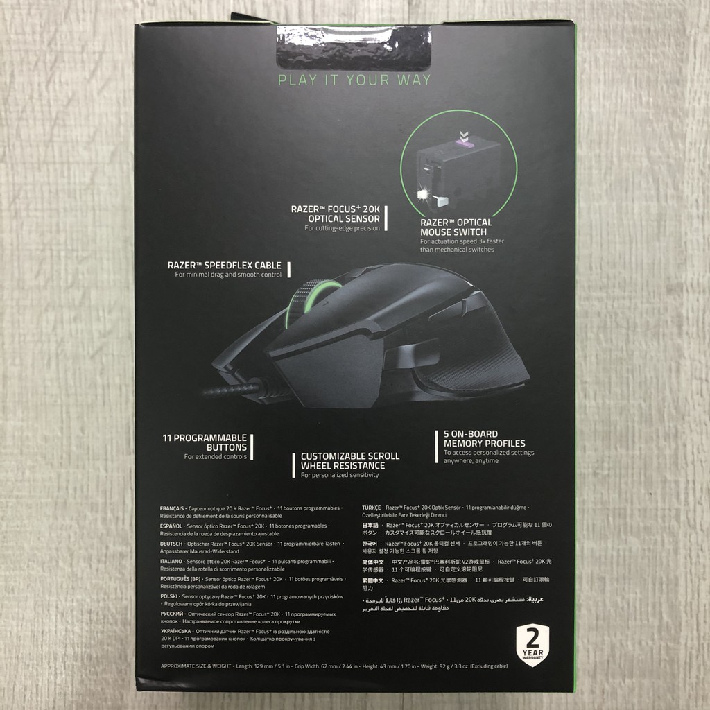 ++++ 11 nút bấm có thể lập trìnhThông qua Synapse 3, tinh chỉnh và thiết lập các chức năng yêu thích quen tay của bạn để đạt được kết quả tối đa. Cũng giống như người tiền nhiệm Basilisk, Chuột Razer Basilisk V2 Gaming Mouse RZ01-03160100-R3M1 cũng có phần đệm đỡ ngón tay cái đặc trưng.