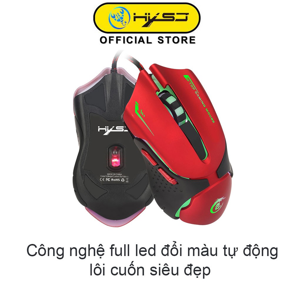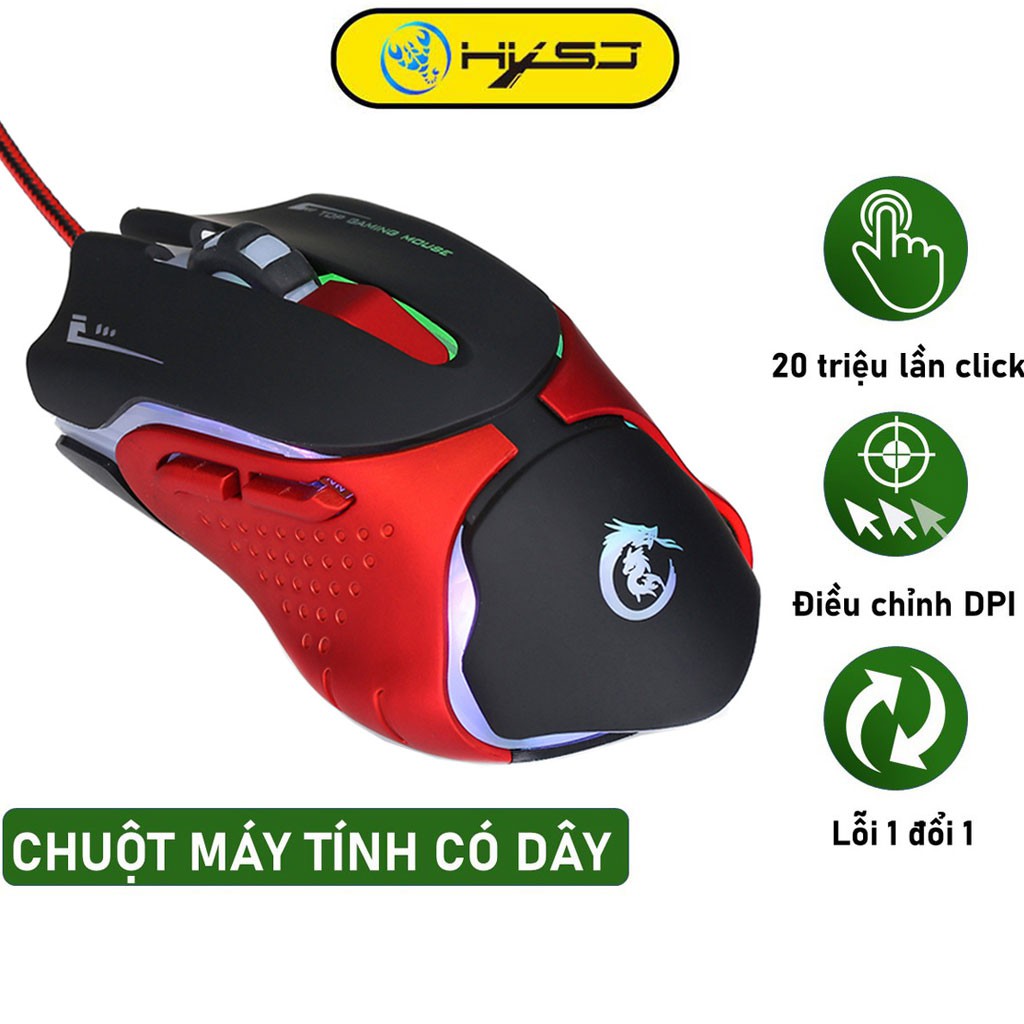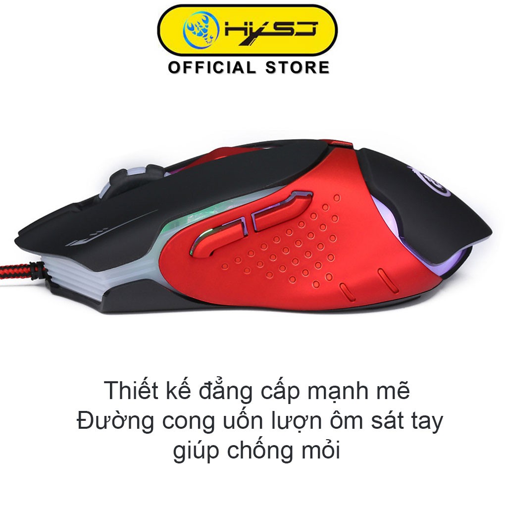 Chuột game thủ chuột có dây HXSJ A903 thiết kế độc lạ led đổi màu 3200DIP, dây USB bọc dù siêu bền chuyên dùng chơi game