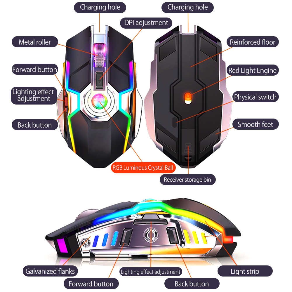 Máy tính & Laptop > Chuột & Bàn Phím > Chuột Máy Tính || Chuột Gaming A5 Không Dây Chơi Game Sạc Pin Im Lặng Ergonomic 7 Phím Đèn Nền RGB 1600 DPI Chuột Cho Game ThủCòn hàng