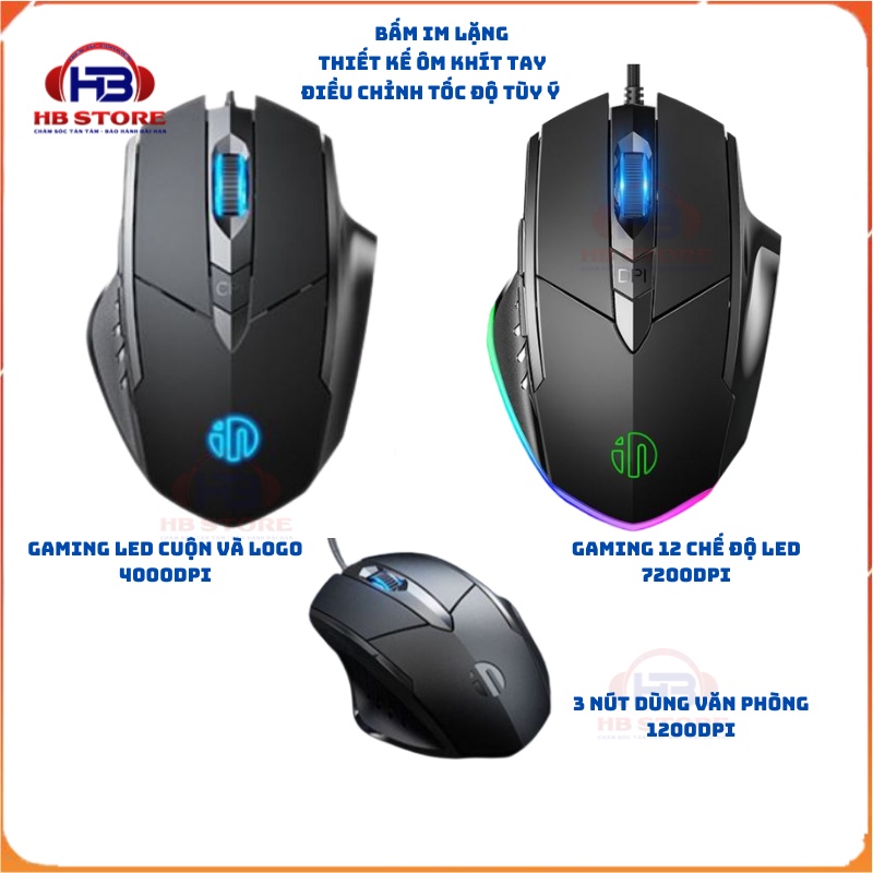 Chuột gaming có dây chống ồn silent click Inphic PW1 - Chuột chơi game 12 chế độ led 800-7200DPI, Chuột game thủ chuyên nghiệpChuột máy tính có dây này có nhiều phiên bản tùy theo nhu cầu là là làm việc bình thường hay chơi game mà chọn cho phù hợp, các mã chuột có bao gồm: