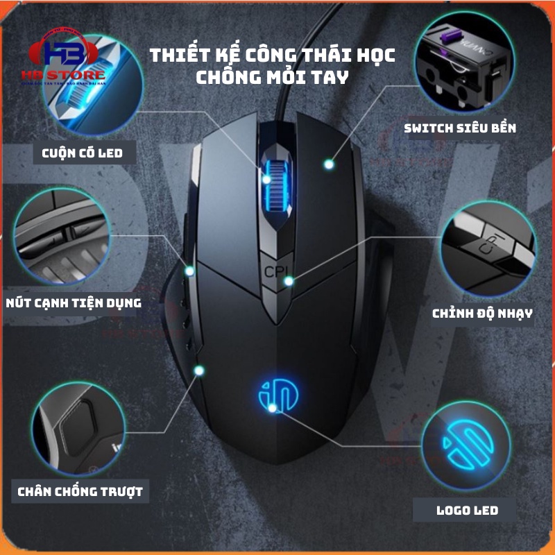 • Thiết kế chuột gaming chuột máy tính có dây tắt tiếng click, chống ồn trong môi trường văn phòng, công cộng hay làm việc ban đêm