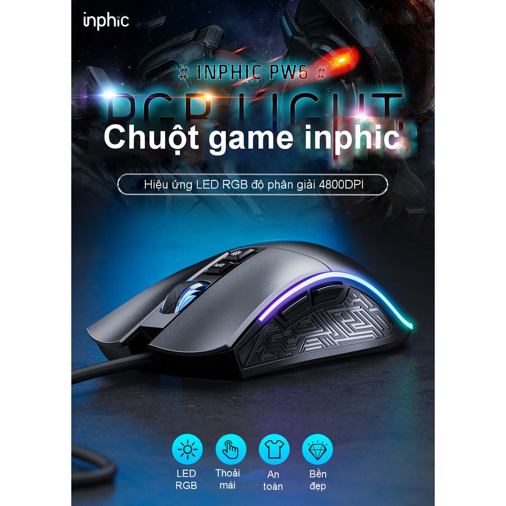 Máy tính & Laptop > Chuột & Bàn Phím > Chuột Máy Tính || Chuột Gaming Có Dây inphic PW6 LED RGB 16,8 triệu màu cho game thủ chuyên nghiệp - Chính HãngCòn hàng