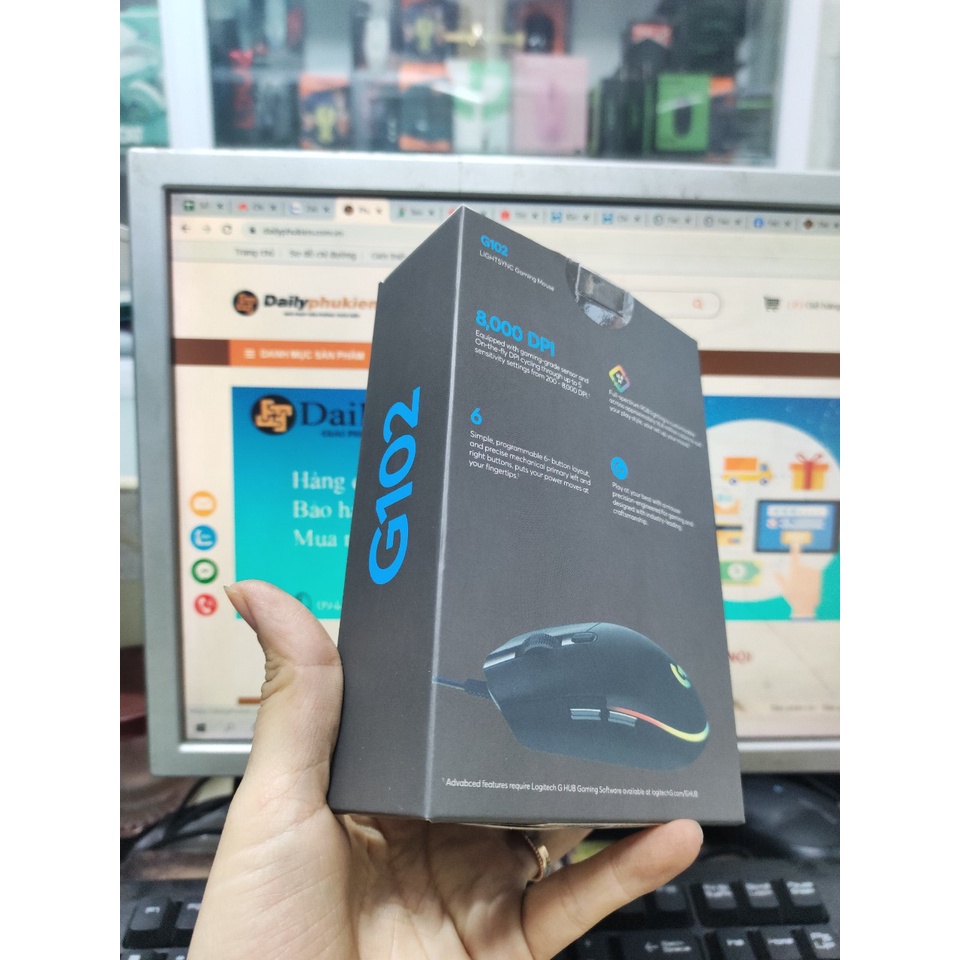 Máy tính & Laptop > Chuột & Bàn Phím > Chuột Máy Tính || Chuột gaming có dây logitech G102 Led RGB 8000DPI tặng kèm bàn diCòn hàng